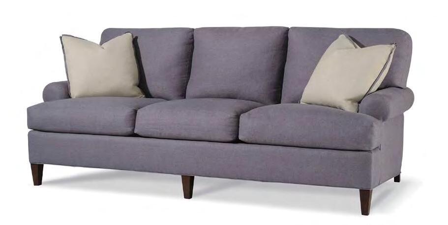 Panel / Roll arm / Round Montana bun foot Optional Nebraska square tapered foot. Available in leather. Nails and throw pillows not included.