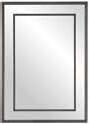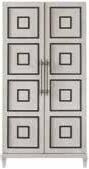 Metal frame doors with beveled glass. One fixed and two adjustable shelves. Interior LED lighting with touch dimmer.