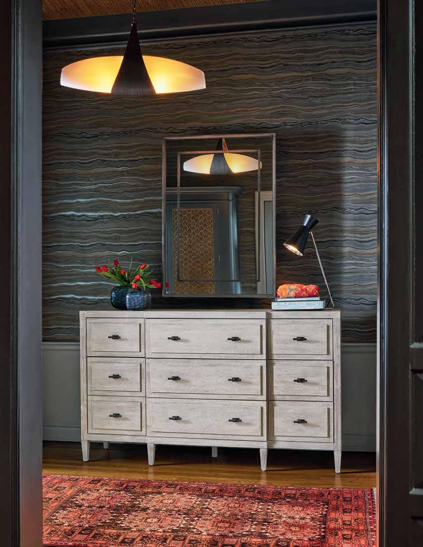 FINISH Wire brushed oak veneers create a grain and texture that beckons the eye.