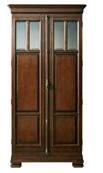 Two doors. Two deep tray drawers. Adjustable shelves. Cedar bottom in tray drawer.