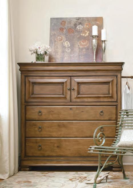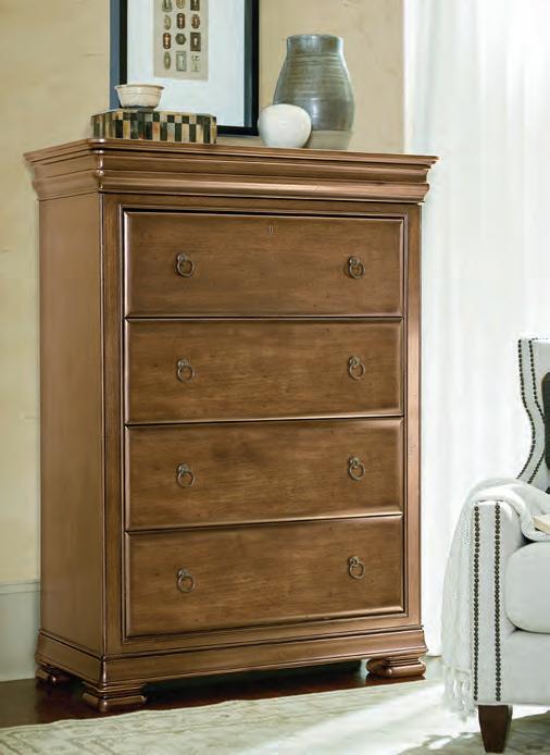 Crafted primarily of alder solids and selected alder veneers // English dovetail drawer construction // Dust bottoms // Stained and sealed drawer sides // Updated French styling // Distinctive ogee styled top frame on select cases