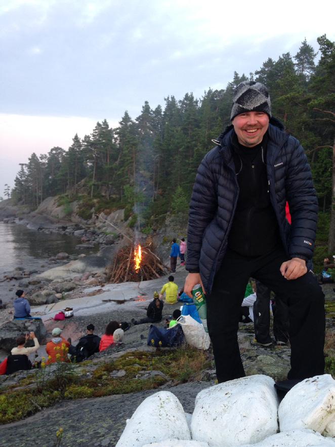 Kellon lyödessä kuusi oli aika riisua märät kamppeet pois päältä ja siirtyä nauttimaan sekä saunan että eväskassin antimista. Nuotiolla paistui herkullisia lettuja (kiitos Ralf!) ja saaren uunituore huussi vihittiin käyttöön.