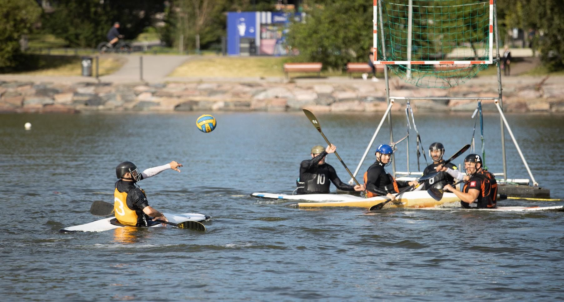 Mielessäni jo pyöri muistoja siitä, miltä tuntuu mennä paljain jaloin veteen ulkosaaristossa. Yllättävää oli astua veteen ja tajuta, että vesi oli hiekkaa ja ulkoilmaa lämpimämpää. Vesille meneminen tuntui jo helpommalta ja onnistui ensimmäisellä yrityksellä. Harjoittelussa pysyin vauhdissa. Huomasin, että mukana oli eritasoisia melojia ja ihmiset tulivat ennen kaikkea nauttimaan lempilajinsa parissa.
