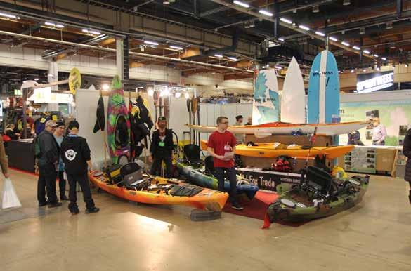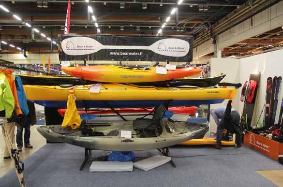 Bear & Water esitteli osastollaan retkikajakit Valley Etain, Wilderness Focus ja Tempest. Kalastuskajakkeja oli Ride X 115 max ja Thresher, lisänä oli koskikajakki Recon.