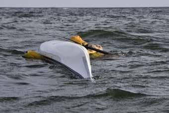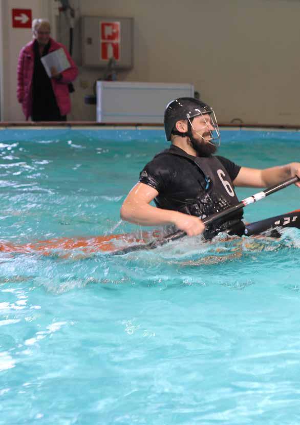 Merimelojien Aarne Miettinen demoamassa kanoottipooloa