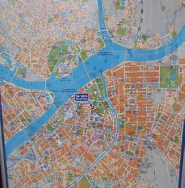 Aallokko Nevalla oli yllättävän korkeaa. Kiertelimme suunnitellun reitin mukaan pitkin kapeita kanavia ja leveitä pääväyliä. Pääsimme tutustumaan kulttuurinähtävyyksiin vesitse. Vesiliikennettä oli liikkeellä muutoinkin, mm. turistien kyydityksiä, paikallisia asukkaita ja viranomaisia. Koh tasimme myös sillan alle telttoineen majoittuneen melojan, joka ker toi olevansa matkalla Solovetskiin. Reitin varrella poikkesimme paikalliseen kahvilaan. Lounaan söimme omista termareistamme joen rannalla.