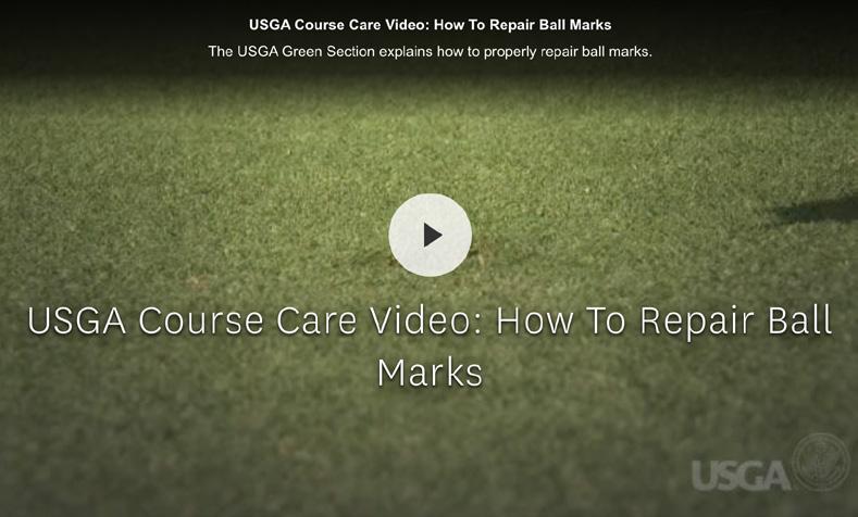 The USGA has a video on its website illustrating the proper repair technique. The recommended ball mark repair tool is readily available in the Outside Services office.
