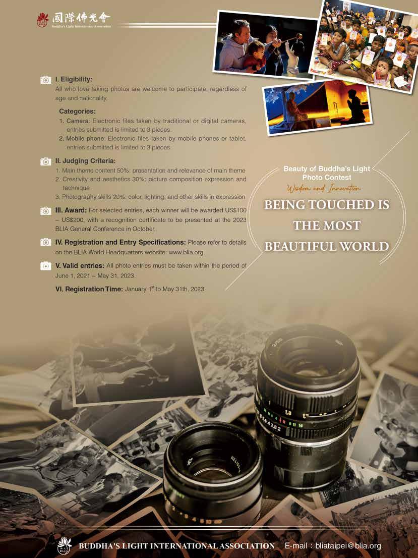 19 提 案 七 案由: 舉辦2023年「三好微電影國際創作競賽」案,提請討論。 說明: 為傳播人間真善美,響應創會會長 星雲大師提倡的「做好事、說好 話、存好心」三好運動,發起三好微電影國際創作競賽,鼓勵全球各地 以短片方式呈顯生命中最善美的故事,一起推動世界的愛與和平。 辦法: 一、徵選主題:《 無常的可貴 │ Wabi-Sabi 》 二、 活動時間: (一)網路徵件:2022年12月01日~2023年06月30日止; 網路投票時間:2023年07月15日~2023年07月31日止。 (二)評審評選:2023年8月。 (三)公布結果:2023年10月公布名次與結果。 三、 相關辦法:請參見世界總會官網www.blia.org。(P.52) 決議: 提 案 八 案由: 2023年佛光之美「智慧與創新‧感動是最美的世界」攝影比賽案,提請 討論。 說明: 秉持淨化人心之理念,「佛光之美攝影比賽」透過鏡頭,捕捉佛光會 活動及佛光人感動的瞬間,闡揚創會會長 星雲大師「感動是最美的世 界」。 辦法: 一、報名日期:2023年1月1日至2023年5月31日。 報名網址:https://forms.gle/y9y5XUjVN4XriPwt9。 二、 活動詳情,請參閱附件(P.53)。 決議: 2022 BLIA World Headquarters Virtual 4th Meeting of the Meeting of the Seventh Board of Directors 國際佛光會 世界總會2022年第七屆第四次理事會線上會議