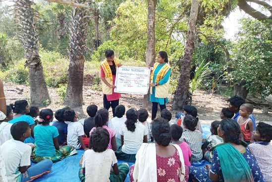group. BLIA Chennai made arrangements for teachers to visit the villages weekly to teach hygiene, the Three Acts of Goodness, language, arts, and games.
