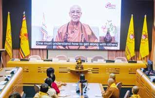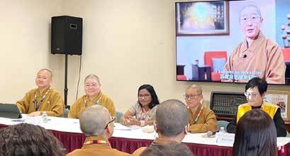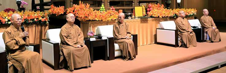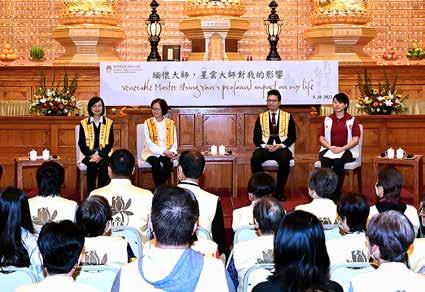 At the “Remembering Venerable Master Hsing Yun's Teaching Through His Speech and Self-Examples,” World Headquarters Director and Thaihua Temple Abbot Most Venerable Hsin Ting led a recitation of the Prayers and Wishes for the Most Venerable Hsing Yun of Fo Guang Shan . Monastic and lay disciples encouraged each other to strive for the propagation of Humanistic Buddhism. Panelists included World Headquarters Sports Committee Deputy Director and FGS Philippines Chief Abbess Ven. Yung Guang; Southeast Asia Vice Secretary General Ven. Chueh Cheng; Hong Kong, Macau, Shenzhen Region Chief Abbess Ven. Yong Fu; Central Region Chief Abbess Ven. Chueh Ju; and New Media Committee Deputy Director Ven. Miao Xi, sharing the teachings and inspirations from Founding President Venerable Master Hsing Yun’s speech and self-examples. World Headquarters Vice President Liu Chao-ming, Acting President Venerable Tzu Jung, Director Venerable Yi Kung, Director Lydia Chao, and Secretary General Ven. Chueh Pei were in attendance.
