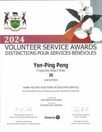 On May 9, 2024, BLIA Toronto volunteers were recognized at the 2024 Ontario Volunteer Service Awards ceremony, held at the Mississauga Convention Centre. They received badges and certificates from Rudy Cuzzetto, MPP and Ontario Ministry of Citizenship and Multiculturalism Director of Stakeholder and Caucus Relations Mark Pelayo, demonstrating BLIA members’ promise to the community and spirit of contribution. Ontario Premier Doug Ford recorded a video thanking the volunteer’s efforts towards making Ontario a more beautiful and livable place. The eight BLIA volunteers who received the award expressed their gratitude for the temple’s recognition, allowing them to cultivate their fields of merit and form wholesome affinities.
