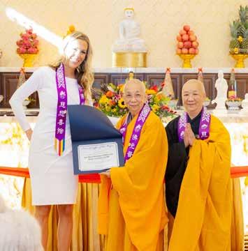 On October 13, 2023, BLIA Austin monastic advisor Venerable Jue Ji, BLIA Austin President Liu Qing, and others were invited to the Asian Family Support Services of Austin (AFSSA) Silk Road Gala. At the gala, AFSSA Executive Director Darlene Lanham presented the Lotus Award to FGS Xiang Yun Temple and BLIA Austin in recognition of their cooperation and support for AFSSA’s public service initiatives. BLIA Austin monastic advisor Venerable Jue Ji and BLIA Austin President Liu Qing received the award. Since its establishment, AFSSA has assisted underprivileged Asian families dealing with domestic violence, safeguarding victims’ legal rights by providing translation services and legal counseling.