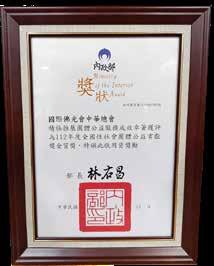 On September 15, 2023, the annual National Social Group Philanthropic Contribution Awards and Outstanding Professional Group Recognition Ceremony was held at the Howard Civil Service International House’s Excellence Hall. At the ceremony, ten Golden Quality Award groups, twenty Silver Quality Award groups, three High Distinction professional groups, ten Excellence professional groups, seven First Class professional groups, and nine Outstanding Institute Operations staff were recognized. BLIA Chunghua received the most prestigious Social Group Philanthropic Contribution Golden Award, and President Chao Yi accepted the medal from Executive Yuan Premier Chen Chien-jen. BLIA received the Golden Award in 2021; with the 2023 award, it is the only religious organization with two awards.