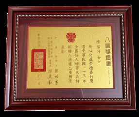 BLIA Chunghua Subchapter Elder Advisor Chen Pi-yue Receives the Eight Virtues Award