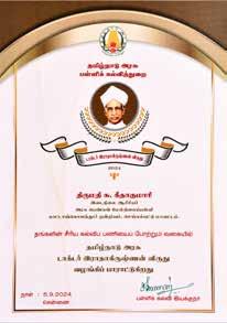 On September 5, 2024, also Teacher’s Day in India, BLIA Tamil Nadu, India President Geethakumari received the Tamil Nadu Best Teacher Award from Tamil Nadu Minister for School Education Anbil Mahesh Poyyamozhi. Geethakumari was recognized for her outstanding contribution towards students’ growth, her pursuit of excellence in academics, and role in improving campus infrastructure. Her efforts to build a developmental learning environment have helped countless students unlock their potential; her passion towards education, selfless contributions, as well as innovation and compassion have been deeply recognized. The award cements Geethakumari’s status as one of the most inspirational educators in