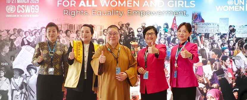 年 3 月 19 日國際佛光會休士頓協會前理事、世界亞裔 女性聯盟代表兼心靈輔導師蕭瑛媜,受邀出席世界亞裔女 性聯盟(World Alliance of Asian Women)於聯合國紐約總部舉 辦的「聯合國第 69 屆婦女地位委員會大會(CSW69)」平行 論壇,並獲頒「2025 傑出女性文化創新成就獎」。該獎項由 主席艾倫趙琼親自頒發,肯定其在心靈輔導領域的卓越貢獻, 以及長年投身公益,致力於婦女與兒童權益保障,並積極關注 家庭暴力、校園霸凌等等貢獻,佛光人獻上祝賀,共同見證這 份殊榮。