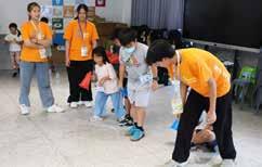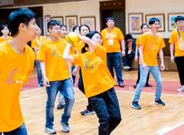 行的共通性——挑戰極限、開發自我的潛 能」;運動會則由白象幹部帶領運動闖關, 從頂水缽、呼拉圈闖關、躲避球PK賽等 活動,發揮團隊精神,將六度理念實踐於 競賽;大會也特別安排在運動會後設計「佛 光好事集」,以餐車形式讓青年體驗蔬食