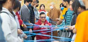 此外,課程也安排跨社交流,攜手排球社舉辦矇眼 尋寶遊戲,帶領思考團隊中的每個人都是不可或缺的, 要懂得欣賞不同的美。期末最後一堂課則是帶領大家 前往佛光山三重禪淨中心參訪,同時為當地宣傳暑期 兒童夏令營,並邀請學生擔任工作人員及隊輔,讓青 春不設限。