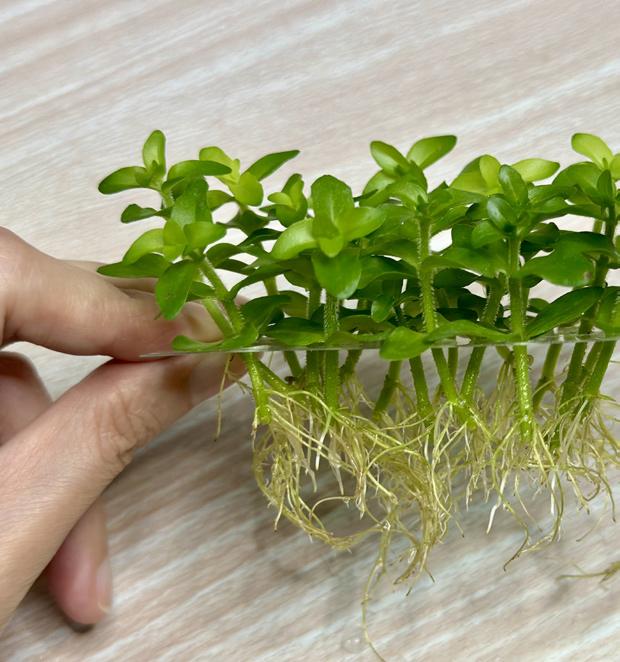 、淡紫色的花朵;沉水種植時 葉片會呈現淡褐色。植株具匍