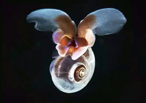 螔螺屬的動物,會透 過拍動一雙擬足(亦作 「疣足」,呈現透明至 半透明色),在水中暢 泳來回,所以得到「海 蝴蝶」的美名。「海蝴 蝶」很怕遇上裸海蝶, 裸海蝶身體上雖沒有長 眼睛,但能靈敏地嗅到 獵物靠近的信息。