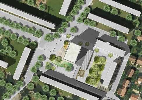Entrée principale Entrée secondaire technique Accès livraison Cour élémentaire Bute végétale accès R+2 Parvis Cour maternelle Forêt Jardin périscolaire Béton aire jeux en copeaux de bois Casquette coursive Terrasse plateau d’évolution Terrasse bibliothèque jardin pédagogique Terrasse du personnel Toiture végétalisée Bacs plantés périphériques CTA dissimulé 10 13 16 BOULEVARD NLANDE