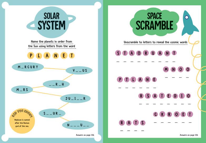 Can you spy the animals hiding in the rainforest word search? Or uncover the gems in the crystal quiz? Become a word magician and transform one word into another! Or crack the clues in the camping crossword. Discover how to spot a palindrome and seek out synonyms!