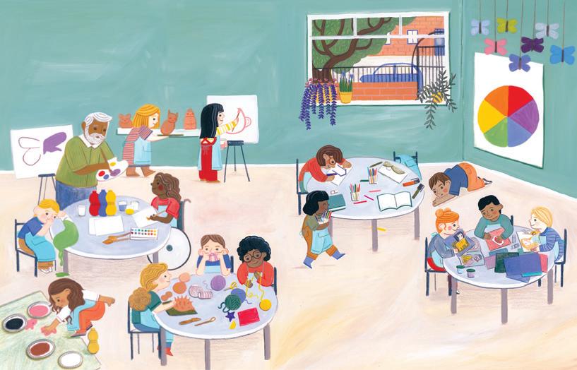 6 MERRIAM-WEBSTER KIDS MERRIAM-WEBSTER KIDS watercolor clay sculpture palette canvas portrait paintbrush In Mr. Saleh’s art class, everyone gets a chance to show their creativity. Li gu an e o h d h r a as sh pa t Mr Sa eh ho h how o mixb d d k pu p e Uh h W li p ed g p h t b glitter red yellow blue purple green color wheel paper scissors colored pencils Gi ny k l g by g ou pic m g and glui g th m g h Juli n d h y llow yon to f h h p u e Can y h lp hi f d ? Art Class 14 15