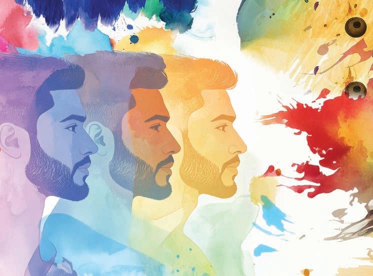 That’s how the creative process began. I wanted the mural—especially its main facade—to convey ‘opportunity’ and ‘community’ through vibrant colours, dynamic shapes, and playful elements. Diversity matters to me, which is why the children on the hill reflect different backgrounds. I also wanted to honour Indigenous peoples: the main face overlooking the valley features colours and braids often associated with Indigenous identity, and two qimmit sit on the lower corners, their gaze directed toward the centre, serving as a symbolic cornerstone. These dogs were significant