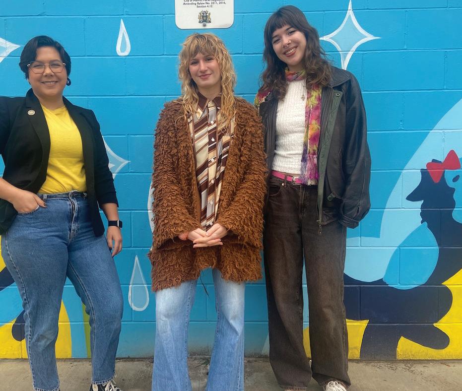 The summer of 2025 saw many City Arts projects completed, among them one of our favourites - the washrooms at Voght Park, near the dog park. Designed by digital artist Astralis Snee and painted by our summer team Janelle Gage and Kari Kroeker, this mural brings joy to all who walk or drive by. Vibrant colours, an engaging design, and a cute Instagram background - this mural has it all.