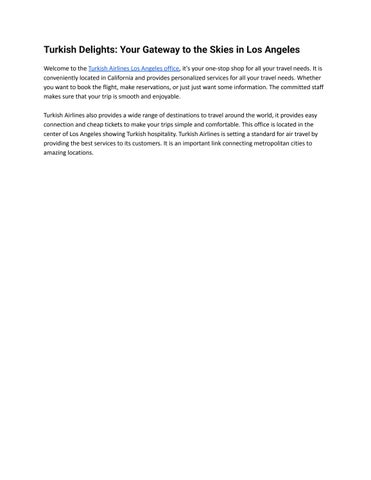 The main goal of the Turkish Airlines Houston Office is to get you safely on the airport and Turkish Airlines flights