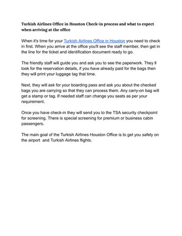Turkish Airlines Office in Houston Check-in process and what to expect when arriving at the office