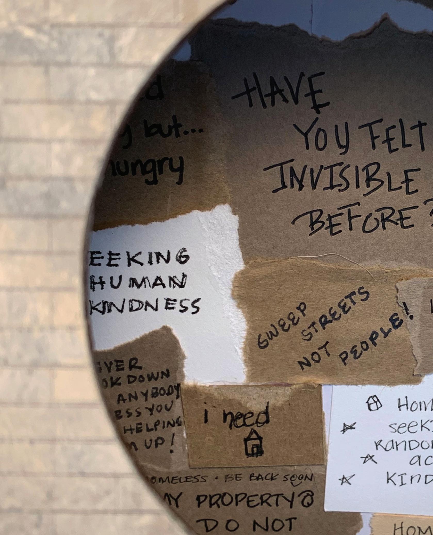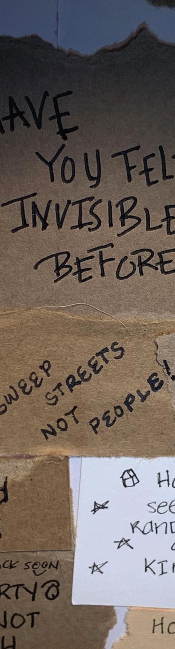 The museum exhibit is a conceptual project that addresses the stigma surrounding homelessness and the stereotypes associated with individuals living without homes. The exhibit is centered around Article #1 of the Universal Declaration of Human Rights, which proclaims that “all human beings are born free and equal in dignity and rights.” Dignity, defined as “the state or quality of being worthy of honor and respect,” is a key focus of the exhibit. Houseless individuals are often deprived of respect and are not considered worthy. They are often looked down upon and judged by society. Many people choose to ignore the existence of the houseless, treating them as if they are not human beings. This exhibit aims to shed light on the issues and challenge the dehumanization of the houseless population.