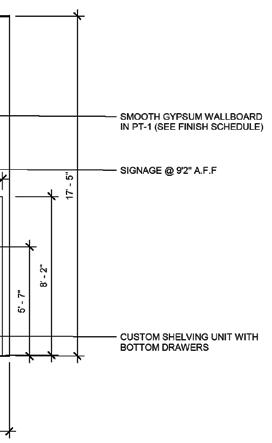 [4] Electrician to disconnect electrical wiring previously attached to the old Stressless display indicated as location #1 on plan and move it to relocation area in preparation for new Stressless Hub (see page A03 for approximate location).
