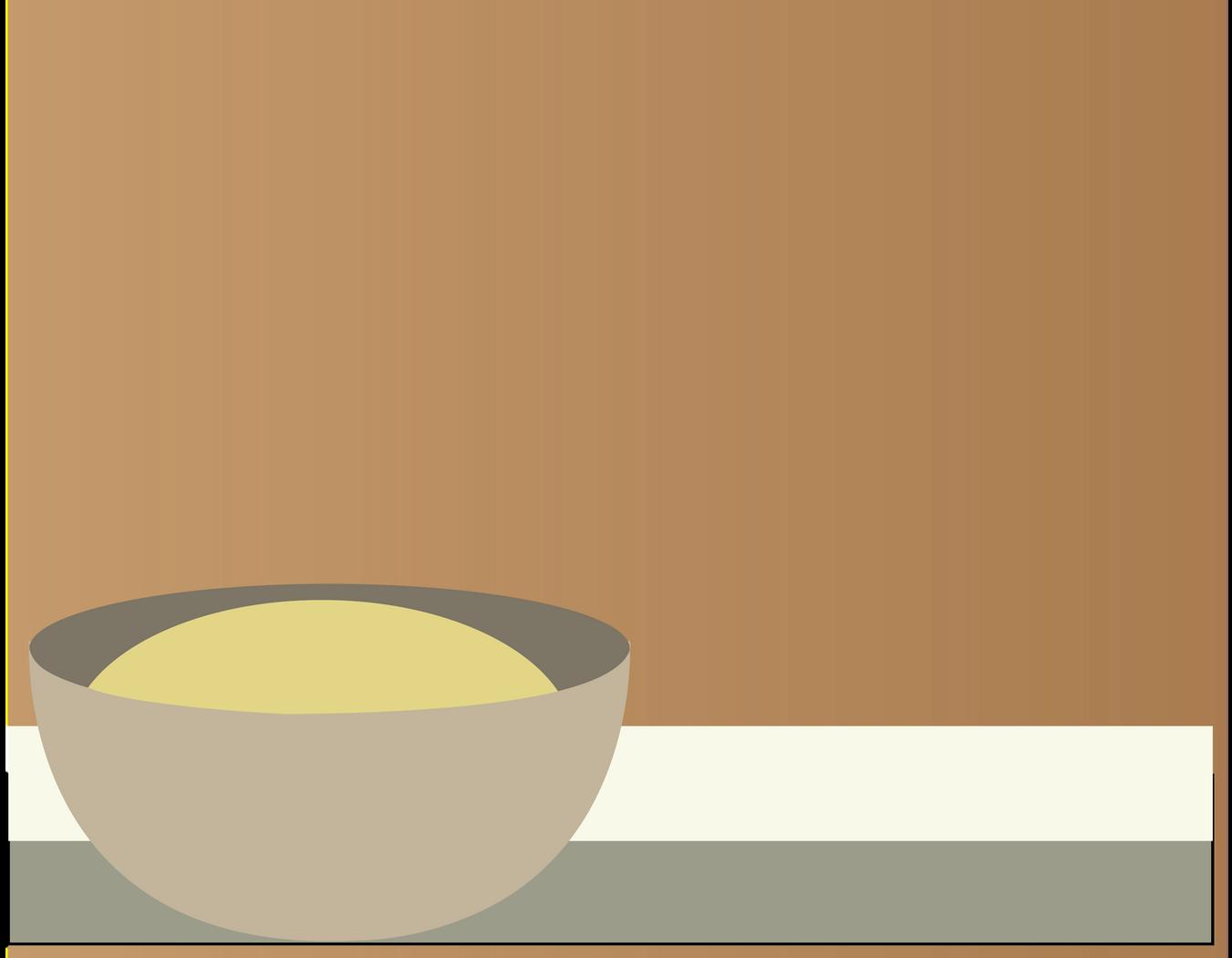 Traeuntazóngrande.McKenziepone untazónenelmostrador. LatíaKellyncolocaaguacaliente,saly harinademaízeneltazón.
