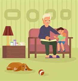 Una tarde de invierno, los nietos de José corren hacia él junto a la chimenea.