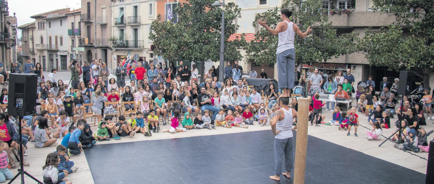 l’ofrena floral a la Mare de Déu del Sòl del Pont. La mati nal va continuar amb la cultura popular de gegants i capgros sos, els quals van protagonit zar una cercavila pels carrers del municipi. A la tarda, entre d’altres, les famílies van poder gaudir de l’espectacle “quan no tocàvem de peus a terra”, del Circ Pistolet. Tots els actes previstos per la nit de diven dres es van traslladar a la car pa municipal a causa de la plu ja, amb l’excepció del correfoc, que va quedar anul·lat.
