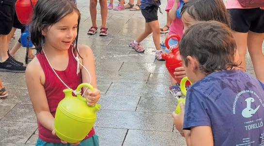 Els actes amb la participació de diverses generacions és ben evident, com en el cas de la porronada per a adults amb vi i cervesa, però també la versió infantil amb càntirs de plàstic plens d'aigua i on els més menuts van gaudir de valent. Ambdues aixecaven el teló de la Festa Major d’enguany el passat dijous.