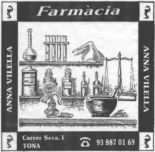 Desde 1910 FARMÀCIA DE LA PLAÇA Antiga farmàcia Buxaderas C/ Barcelona, 2 · Tona Tel. 93 887 02 38 · Control Dietètic · Formulació Magistral · Homeopatia · Sistema Personalitzat de Dosificació · Ortopèdia Anton i Fi gu era s, 11 Ton a Tel: 93 8 87 01 95 LA FARMÀCIA DE LA TEVA SALUT