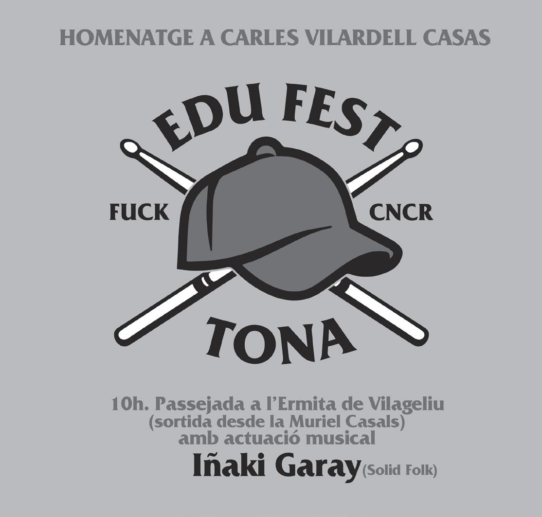 banda/projecte que en Carles va liderar durant 15 anys), la banda barcelonina ALFOMBRA (que després de deu anys es tornarà a reunir per a l’ocasió) i, com a fi de festes, la banda local BIGMUFF, formada per veterans de l’escena osonenca, que oferiran un repertori de versions rock dels 90. Per altra banda, al matí s’organitzarà una caminada. S’iniciarà al Muriel Casals i arribarà fins a l’Ermita de Vilageriu, on se celebrarà un concert en acústic per cortesia de l’Iñaki Garay, íntim amic de l’Edu.