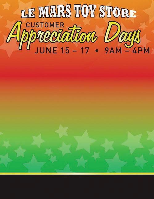 www.farm-news.com Farm News/Fort Dodge, Iowa Friday, May 26, 2023 5B dawn@tripsbydawn.com (515) 320-0793 • www.tripsbydawn.com Trips by Dawn is a full service travel agency located in West Bend, Iowa specializing in romantic honeymoons, tropical getaways, and family adventures, dedicated to coordinating your most memorable vacations. For details, photo albums or to reserve your tropical vacation getaway, call or visit us online today! You need to see it to believe it! DISCOUNT TABLES • RED & GREEN TAG SPECIALS 1/64 - BUY 4 GET 1 FREE AT AVERAGE PRICE Lunch served all day! There will be tables of items set up outside! Specials! RESTORATION, CUSTOM MODELS, PRECISIONS, DISPLAY MODELS,DIE-CAST, FARM TOYS, SEMI-TRUCKS & MORE! 30 PLYMOUTH STREET SW(4 BLOCKS EAST OF HWY 3 & 75 JUNCTION) • LE MARS, IOWA 51031 (712) 546-4305 •WWW.LEMARSTOYSTORE.COM We canʻt wait to see you! IF COMING FROM A DISTANCE, PLEASE CALL AHEAD!