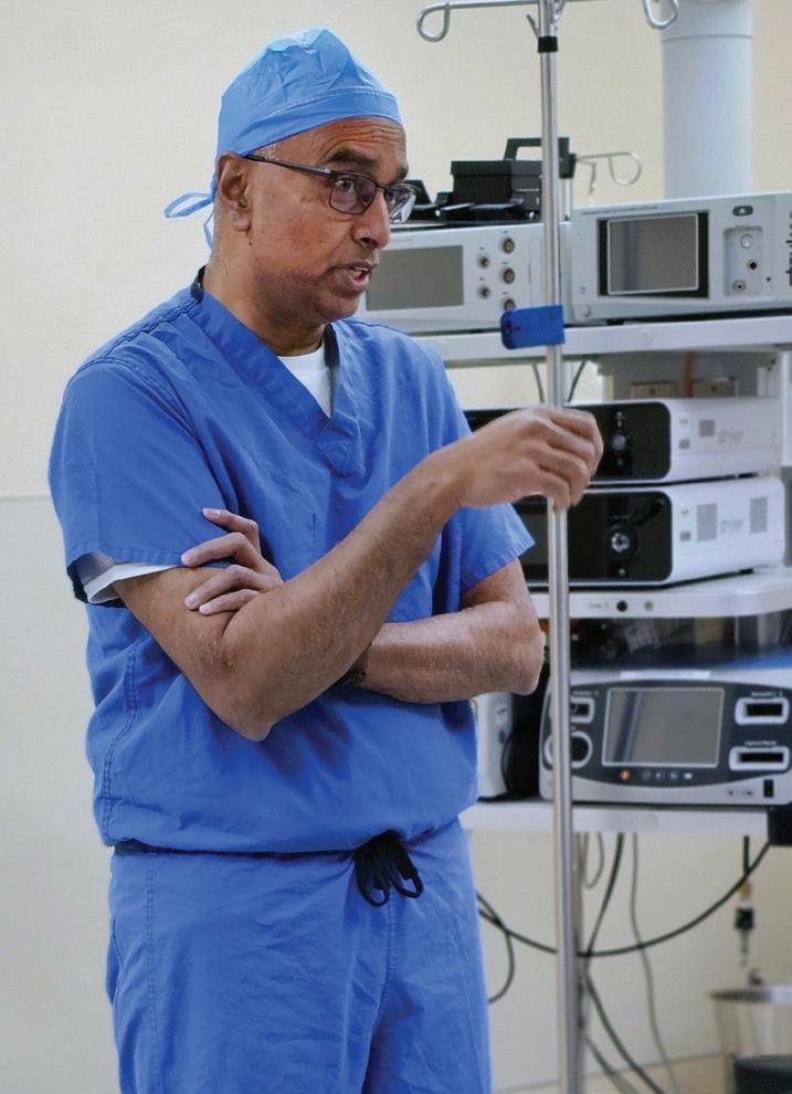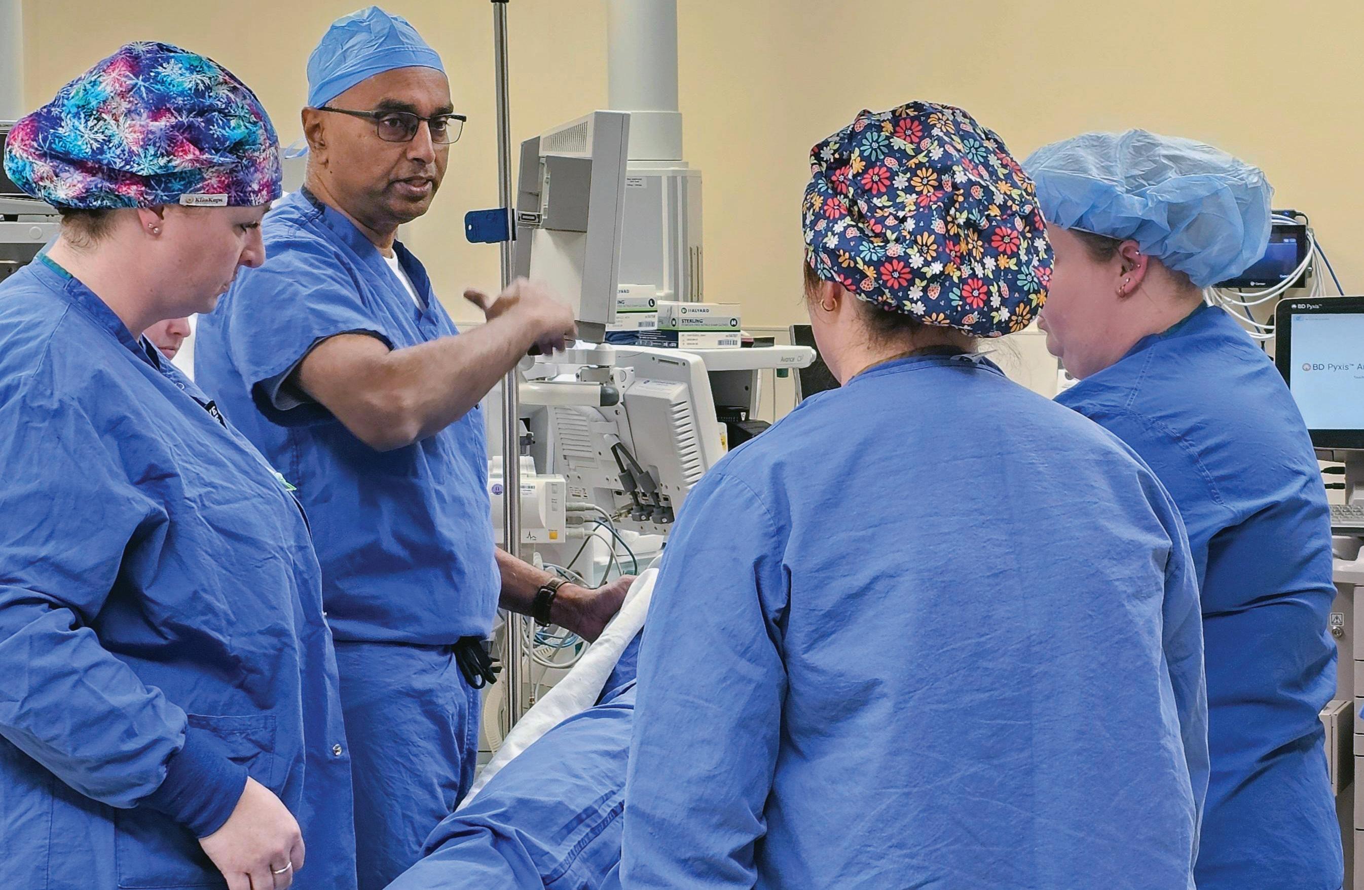 Dr. Sreedhar Somisetty wants his surgical team to understand clearly what he is proposing, as he makes an important point during his work at the hospital.