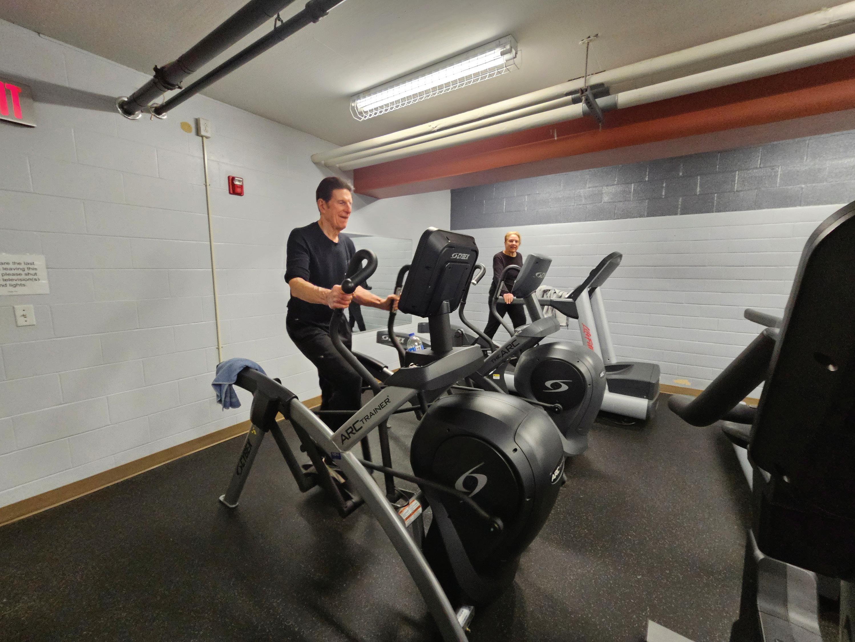 On the main floor you will find the Sampson multipurpose room. This modern meeting room includes a kitchenette, and is equipped for technology presentations. It also hosts a very active, dedicated BASE — Balance, Aerobic, Strength and Endurance — exercise group that meets three times a week.