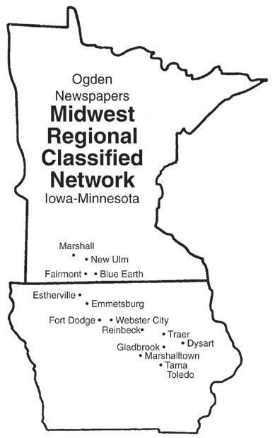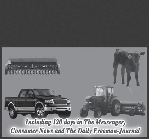 The Messenger will run your 6 line Classified ad for up to 120 days. Your ad will run in The Messenger, The Webster City Daily Freeman- Journal, The Farm News, The Land and Consumer Weekly Advertiser. Call the Classified Advertising Dept. today at: 515-573-2141 ext 430 (one item per ad) (non-commercial) (price must be in ad) (ad must be pre-paid) (additional lins $3.15)