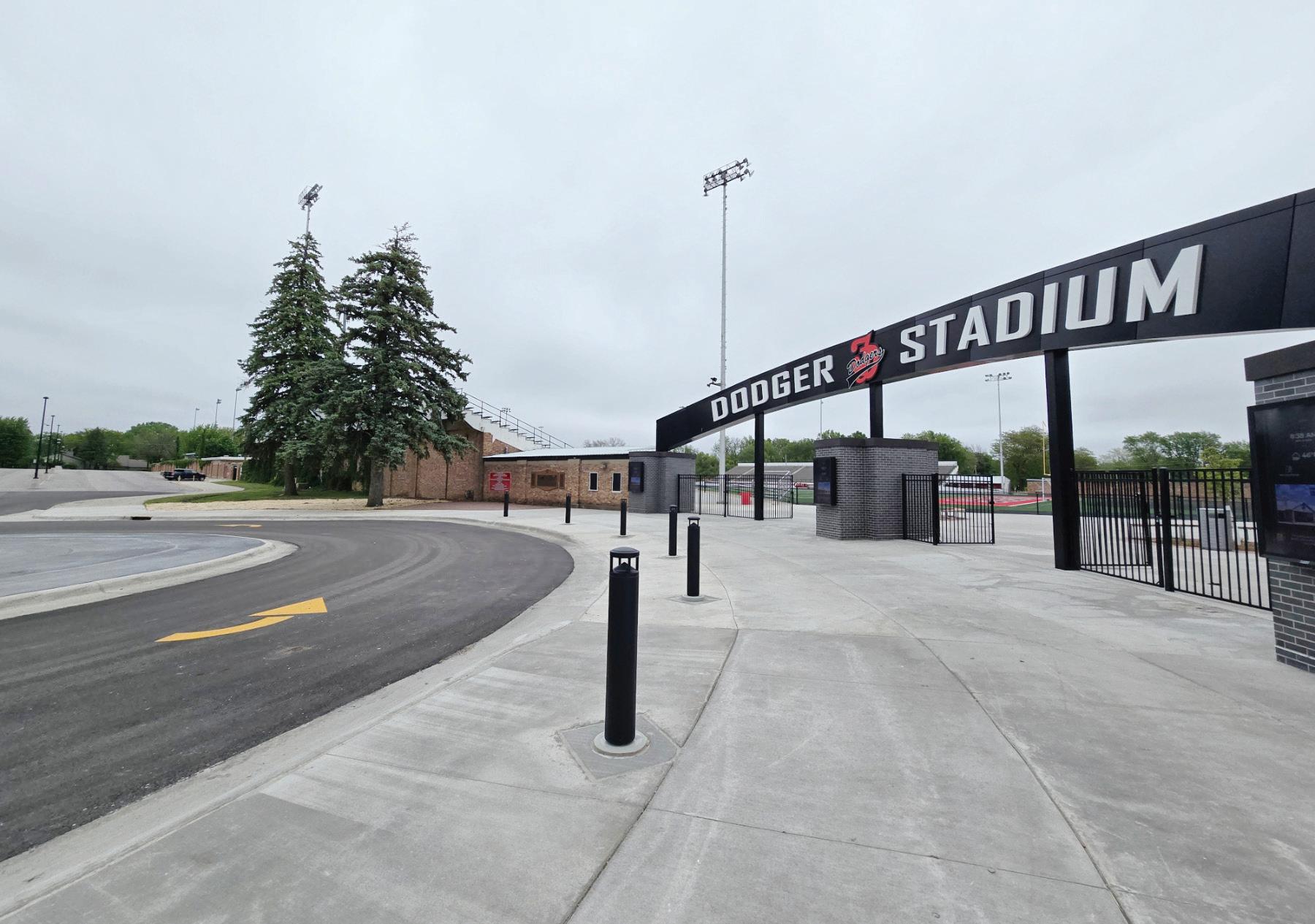 TOP: The new entrance to Dodger Stadium in Fort Dodge features a welcoming archway. The Dodger Stadium renovation project was completed in the spring of 2025.