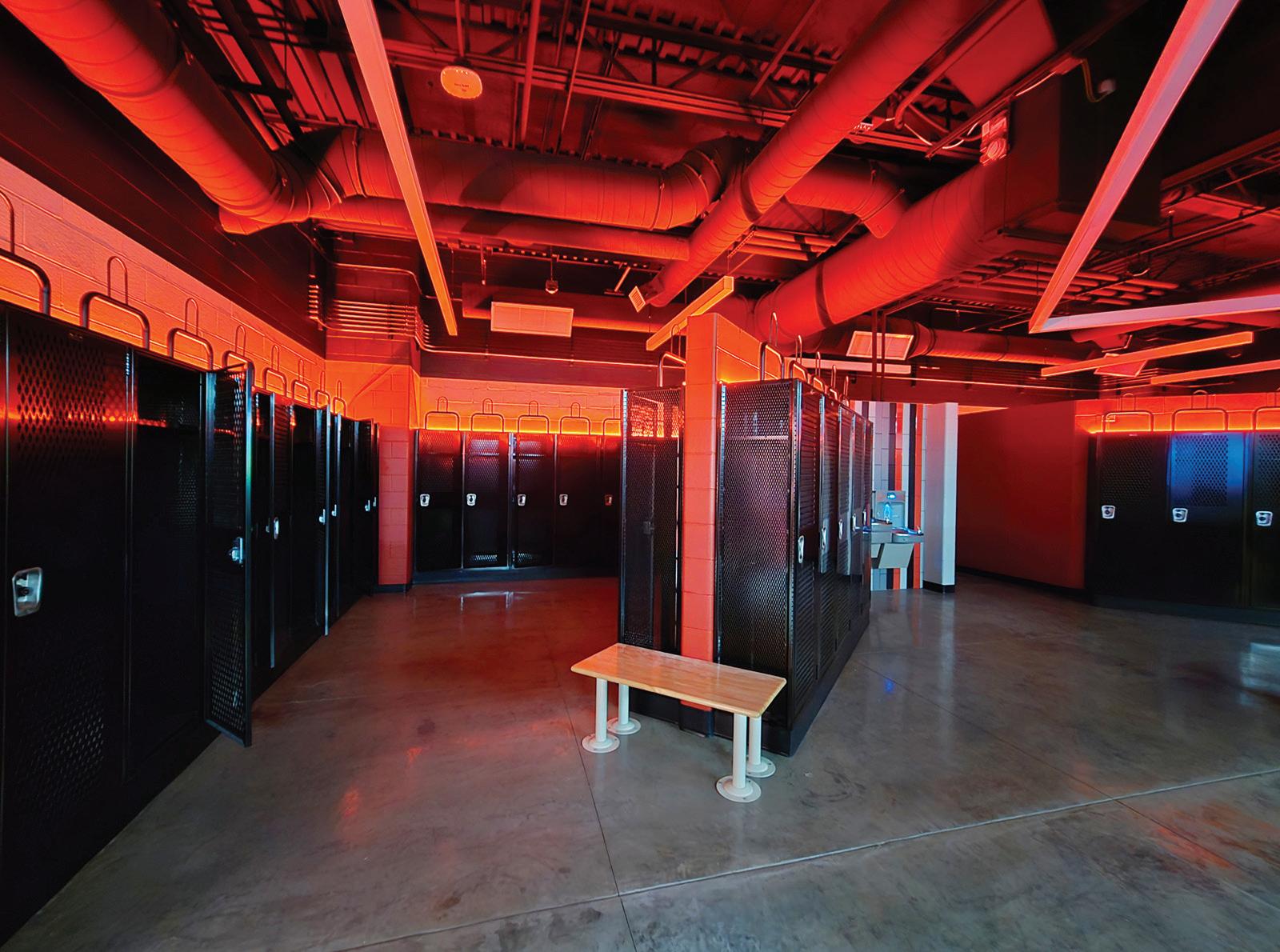 BOTTOM LEFT: A red border glow is on display in the new locker room area when the main lights are out.