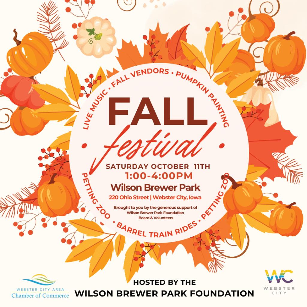 “We’re thrilled to see these additional fall events taking place,” said Anna Woodward, director of the Webster City Chamber of Commerce. “I really appreciate the Wilson Brewer Park Foundation providing this Fall Festival.”