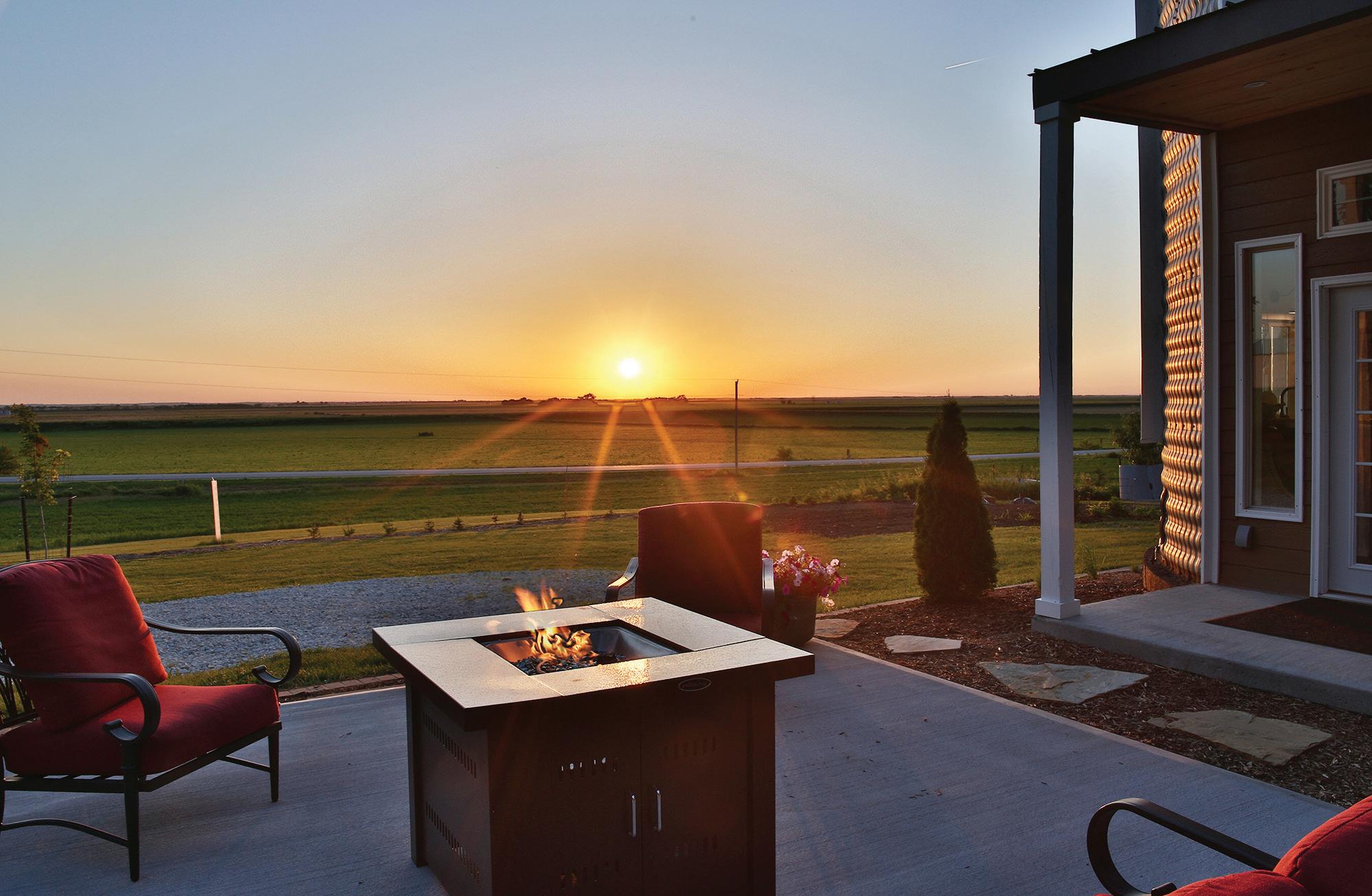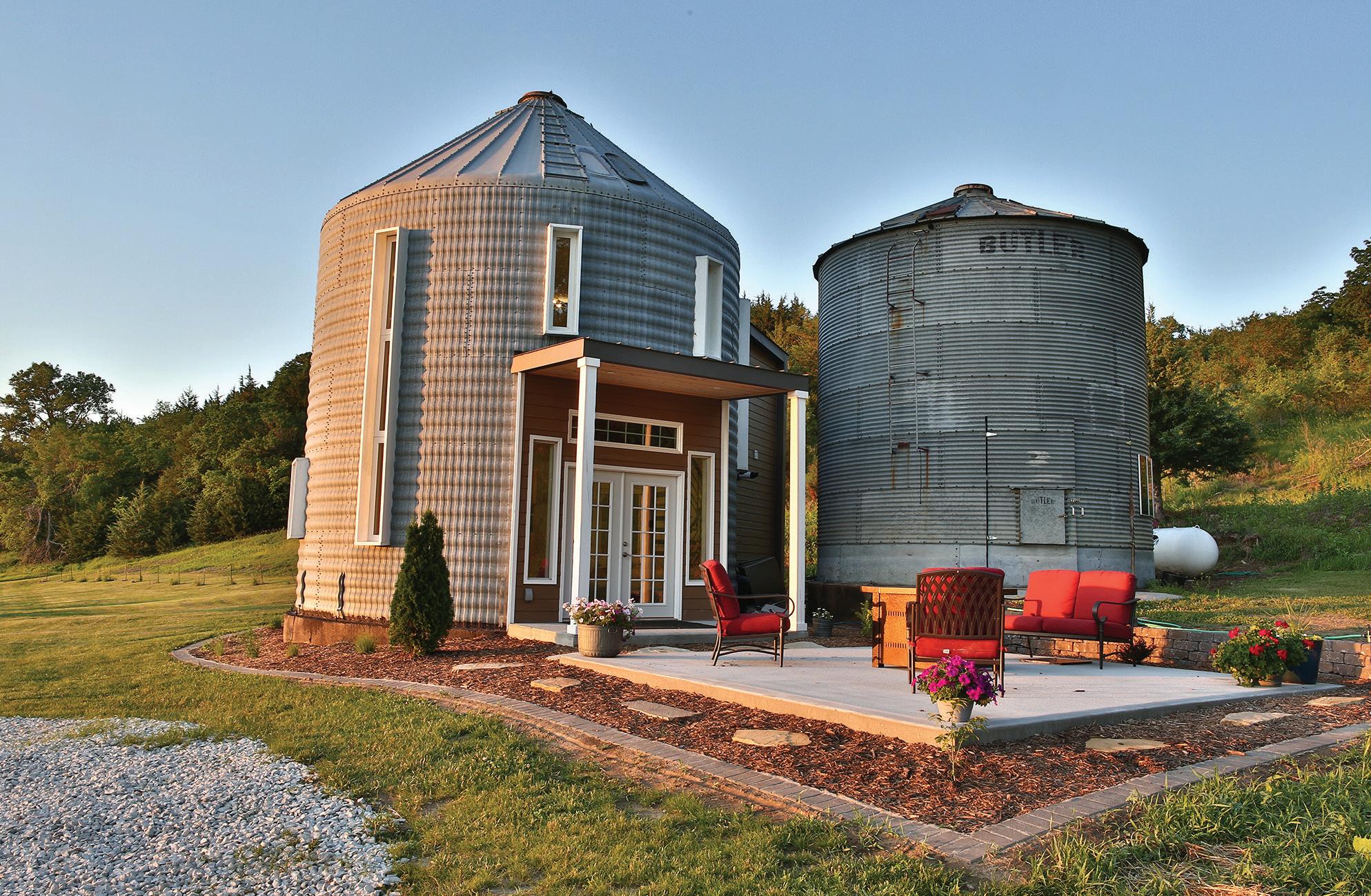 ABOVE: This outdoor seating area provides a quiet place to relax outside the Grain Bin Getaway.