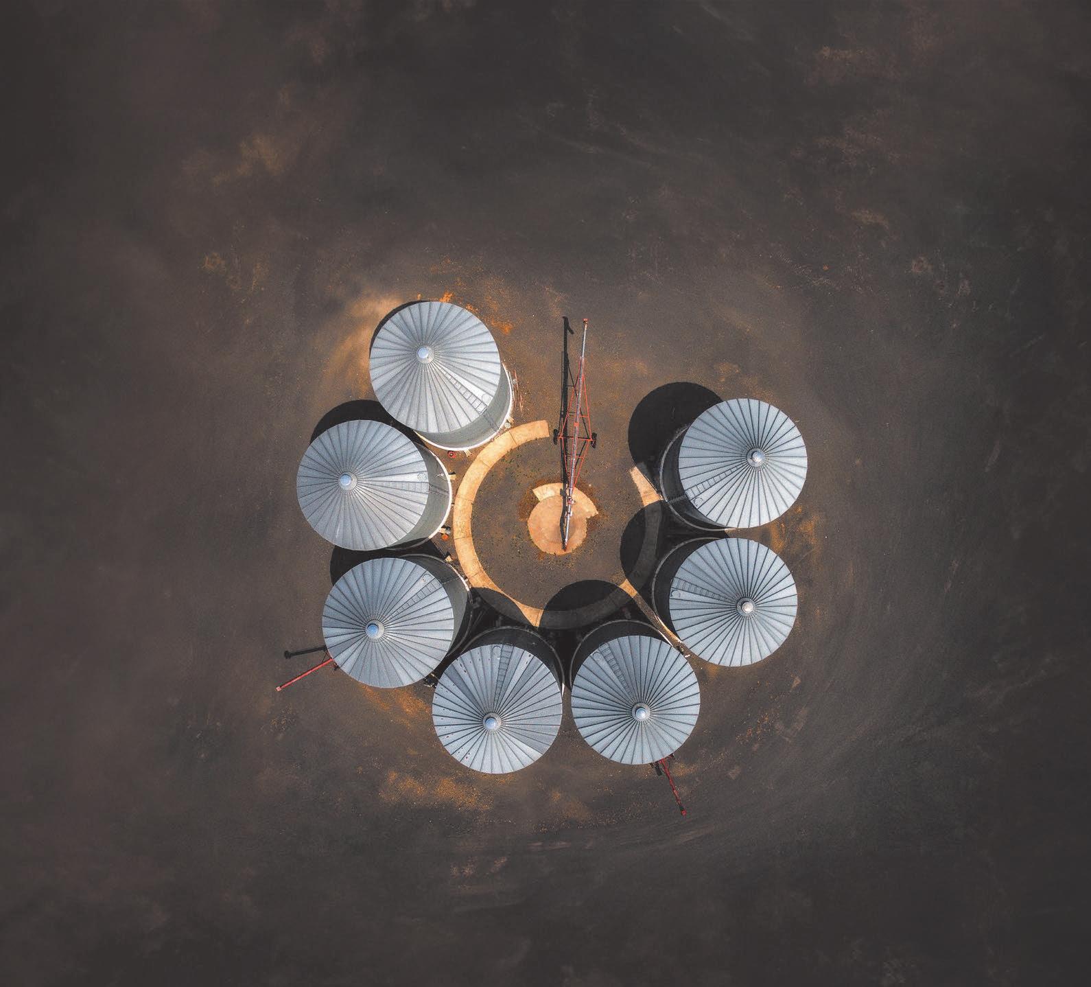 FRAMED BY THE GRAIN LEG on the left and silo on the right, the farm home of Tim and Ellen Tusha is a gathering place for three generations of their family. Their 10 grandchildren, ages 5 and under, now enjoy the swimming pool.