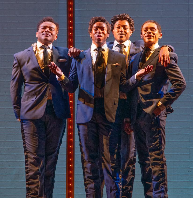 A few scenes later, four powerhouse singers, sizzling in their spectacular sequined costumes, stepped on stage and gave a stunning performance as The Shirelles, the first African American female group to top any charts. Renee Marie Titus, Zuri Washington, Cecily Dionne Davis, and Cece Morin captivated the audience with their moving rendition of “Will You Love Me Tomorrow.”