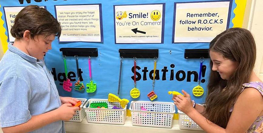 (Pictured left) Maverick Malangone and Stella Marotti exploring the fidget station (Credit - Three Village Central School District)